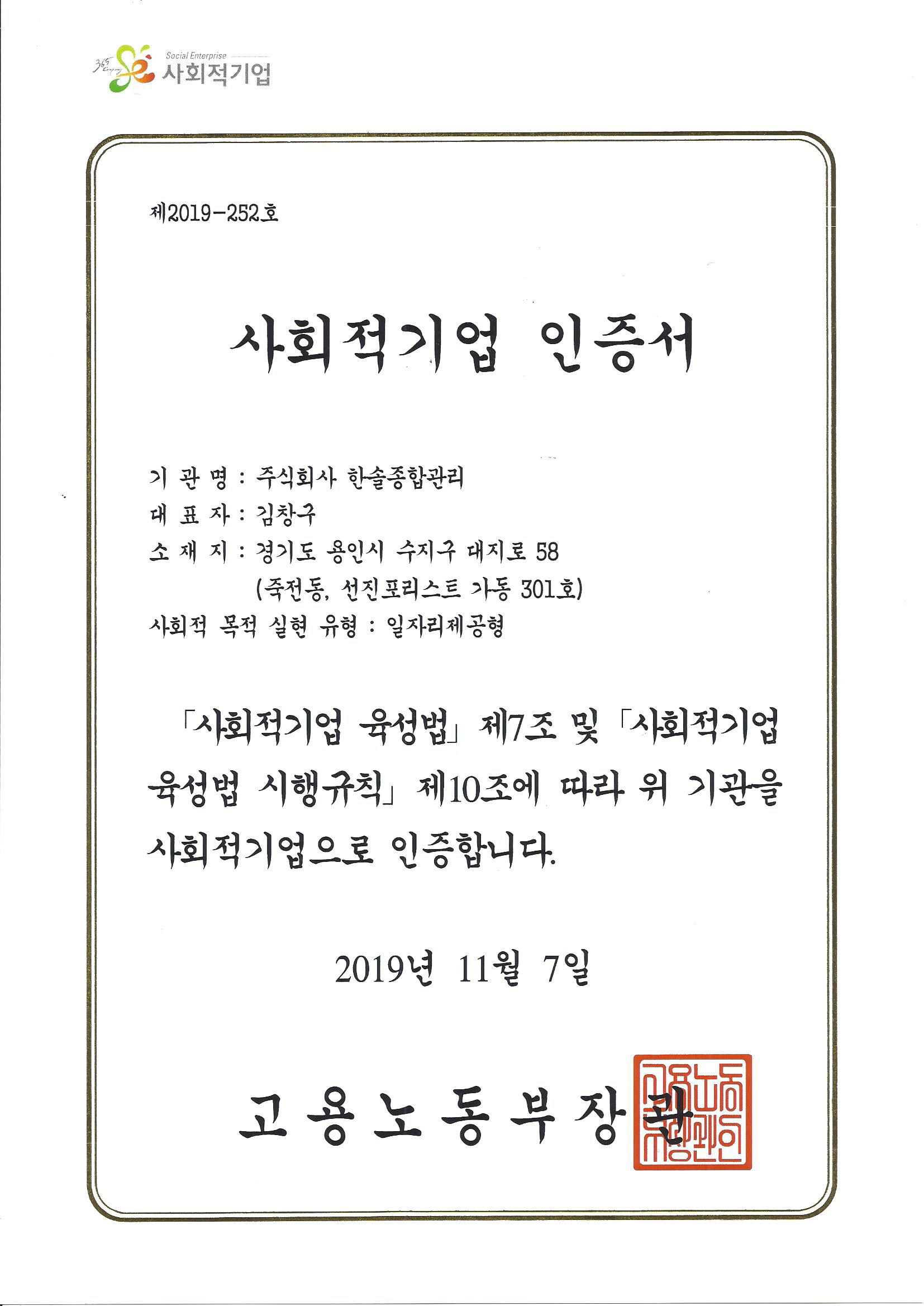 언제나 곁에서 함께 하겠습니다. 언제나 좋은 파트너 (주)한솔종합관리